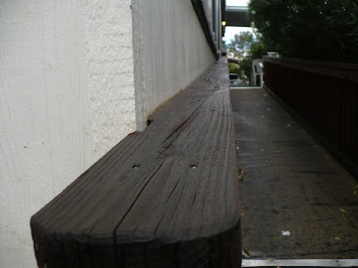 Nothing beats a trial by fire. Or, in this case, rain. We thought we did a good job of staining this wooden wheelchair ramp, but a nice little rainstorm early this morning really put it to the test. The water beaded up and ran off just like it should.